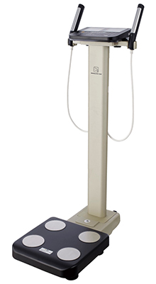 微弱な電流を両手と両足から流し、電気抵抗から体重、筋肉量、体脂肪量、体脂肪率、筋肉バランスなどを測定します。全身の筋量と脂肪量のバランスを紙面により見える化し、体組成改善の動機付けを高めます。