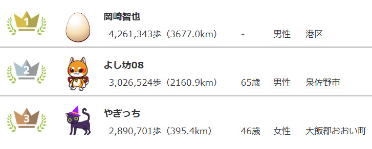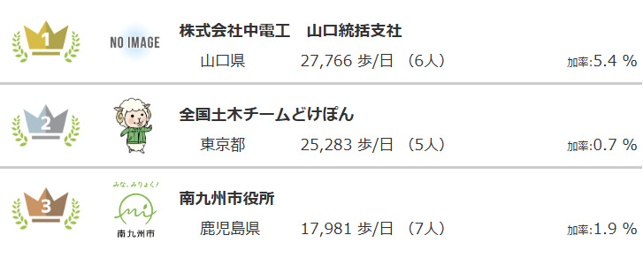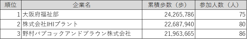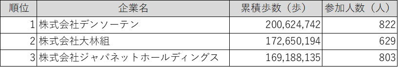 平均歩数・平均走行距離の上位3社(人数カテゴリーなし)企業ベスト賞